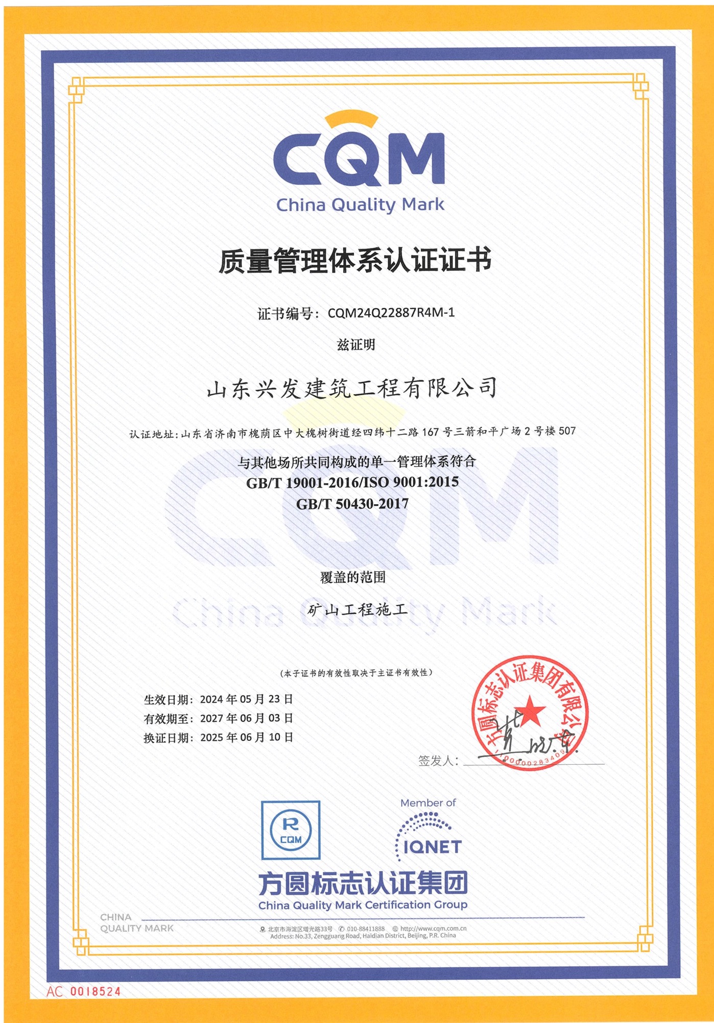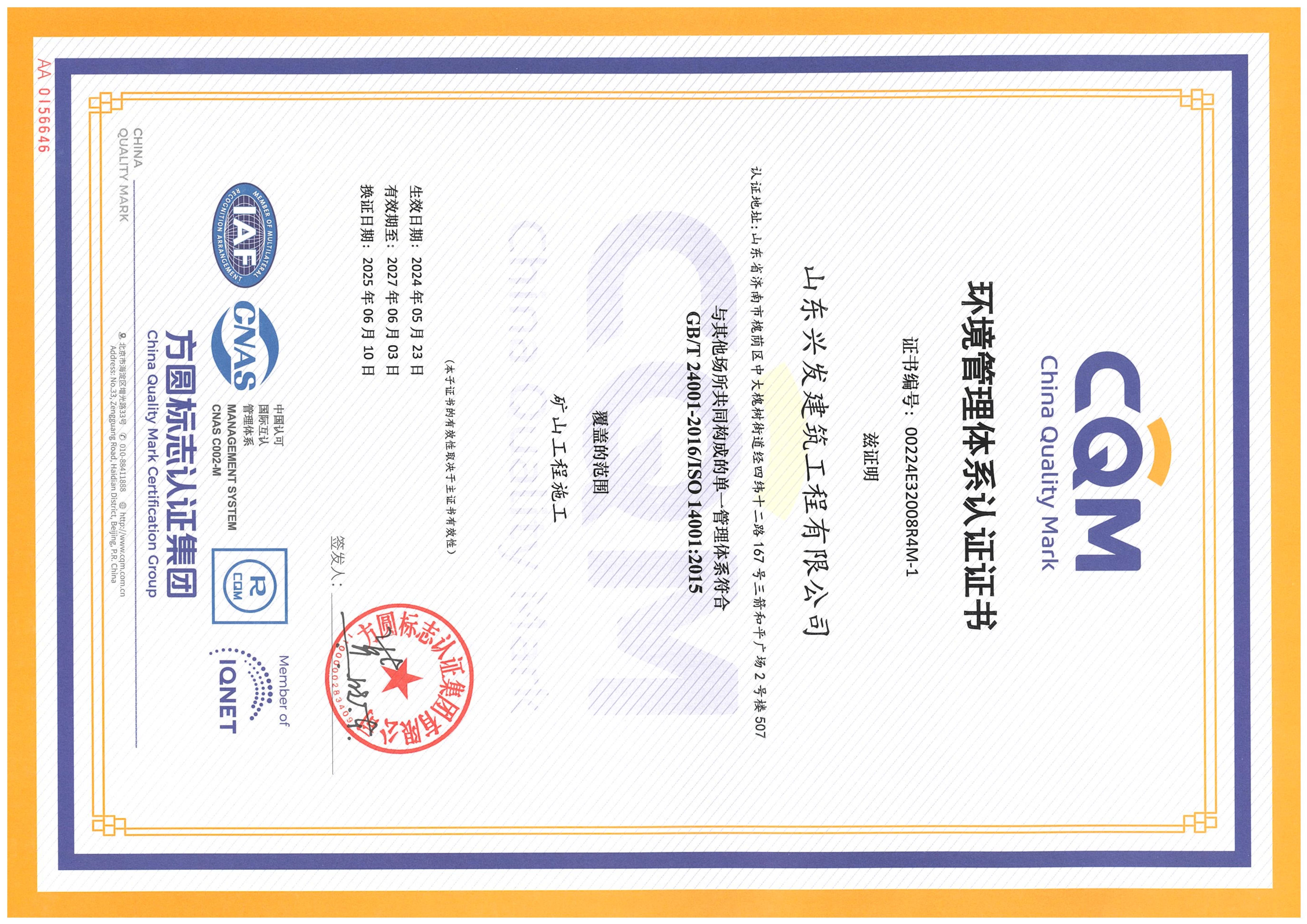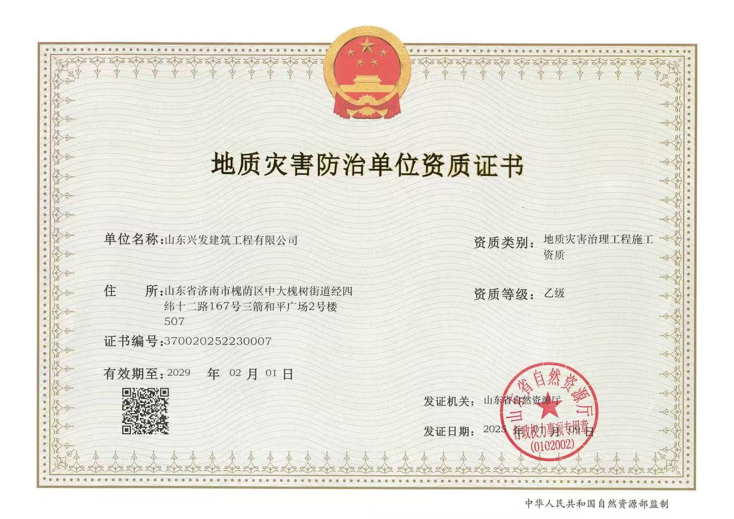 山東興發(fā)建筑工程有限公司資質(zhì)證書