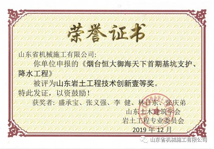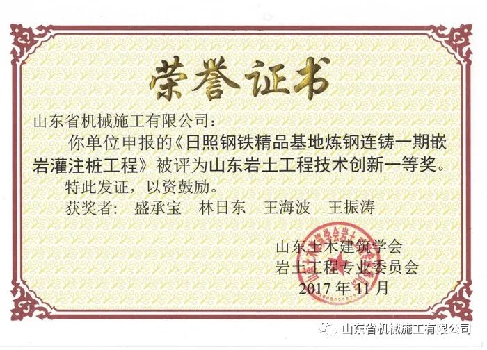 多年的堅持和努力,盛承寶也收獲累累,其任項目經(jīng)理期間所承建的工程多次榮獲《山東巖土工程技術創(chuàng)新壹等獎》,個人屢次被評為山東機施優(yōu)秀項目經(jīng)理。還通過了高級工程師評審及建造師考試,更令他感到光榮的是2021年被推薦成為中國共產(chǎn)黨入黨積極分子。