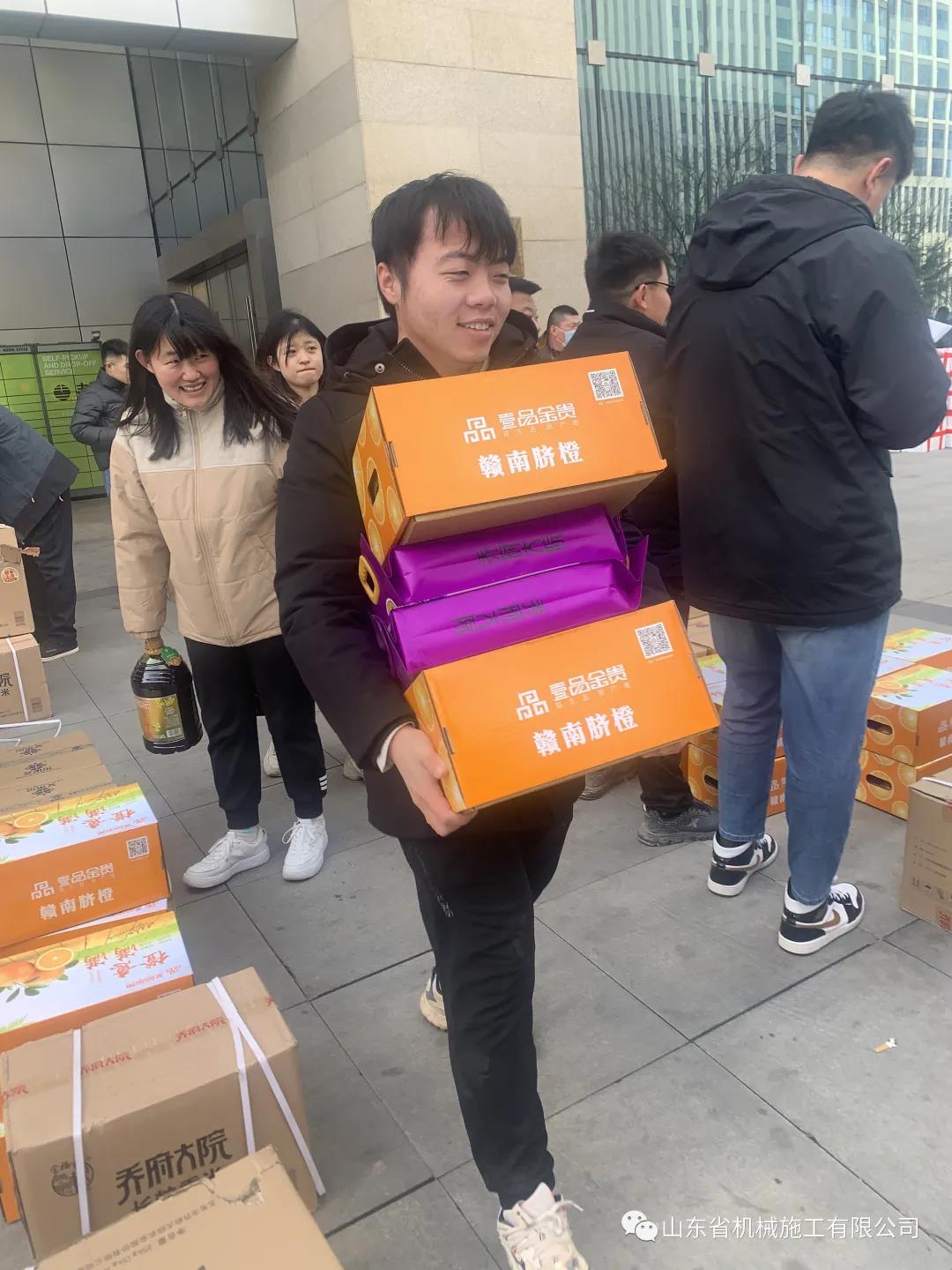 新春臨近,為感謝全體員工一年來的努力付出、關(guān)心職工生活、讓員工開開心度過一個(gè)歡樂、祥和的春節(jié),1月26日上午,山東省機(jī)械施工有限公司為每位員工發(fā)放了豐富的春節(jié)年貨,沉甸甸的年貨給全體員工帶來了新年的氣息。