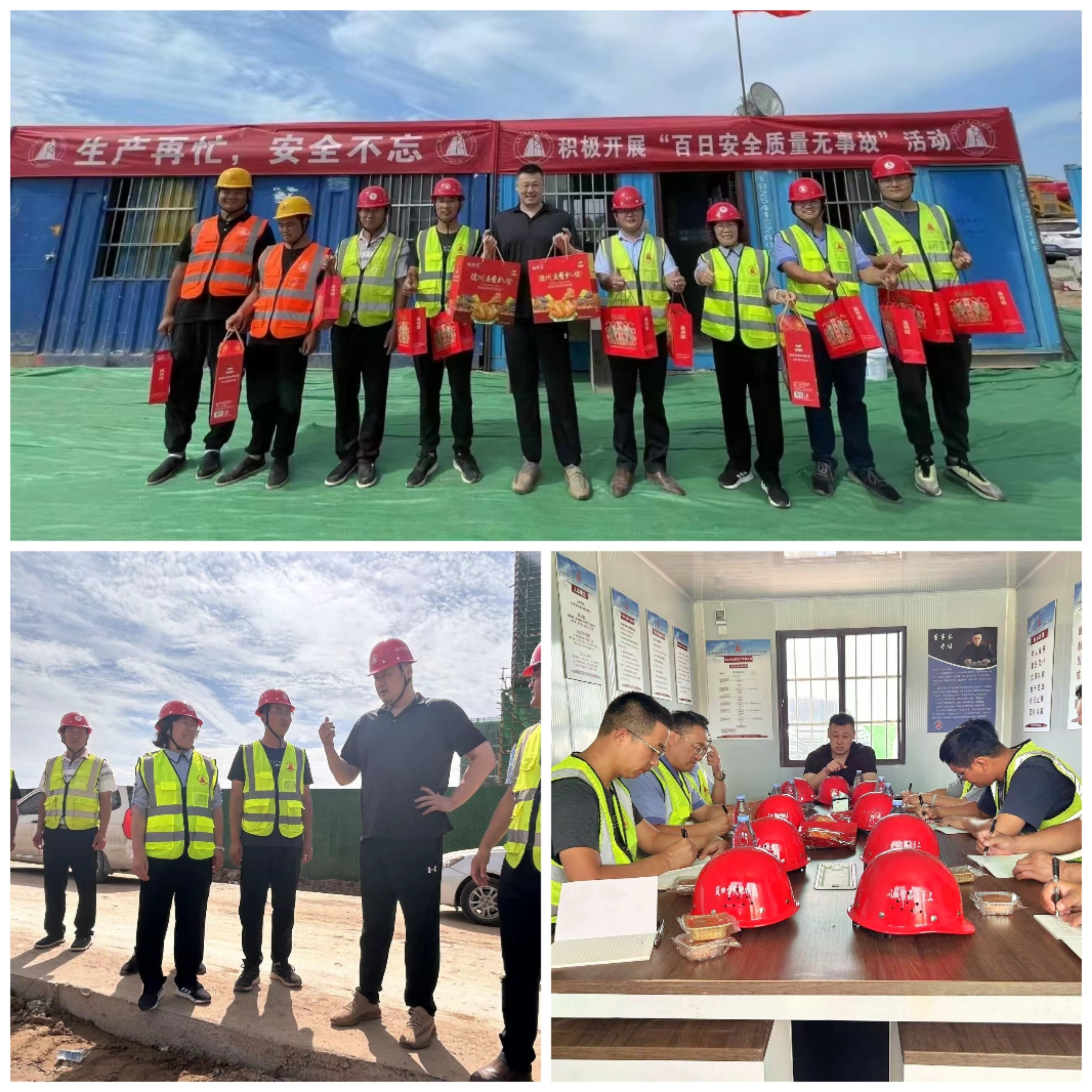 領導們分別來到一分和五分公司聯(lián)合施工的樁基及支護項目、八分公司濟南市應急儲備基地項目、五分公司濟南市中萬科城項目、四分公司棗莊沃豐礦山項目、基礎分公司濟北科技園強夯項目。慰問中,公司領導與項目人員親切交談,詳細了解項目施工、職工生活情況,對項目人員堅守崗位,舍小家為大家的敬業(yè)精神提出表揚,向大家致以節(jié)日祝福,并送上扒雞等慰問品。領導們要求,“每逢佳節(jié)倍思親”,節(jié)假日是生產(chǎn)安全的重要節(jié)點,要調(diào)整好心態(tài),認真落實省市區(qū)政府部門和公司節(jié)日通知要求,全神貫注保安全、抓質(zhì)量、促生產(chǎn),奮力擴大產(chǎn)值效益,沖刺全年目標任務。